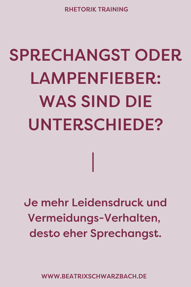 Die Begriffe Sprechangst und Lampenfieber werden dennoch oft nahezu synonym verwendet. Vielen Menschen fällt sicher der Umgang und die Selbstbeschreibung mit dem Begriff Lampenfieber leichter, als die Diagnose Redeangst.