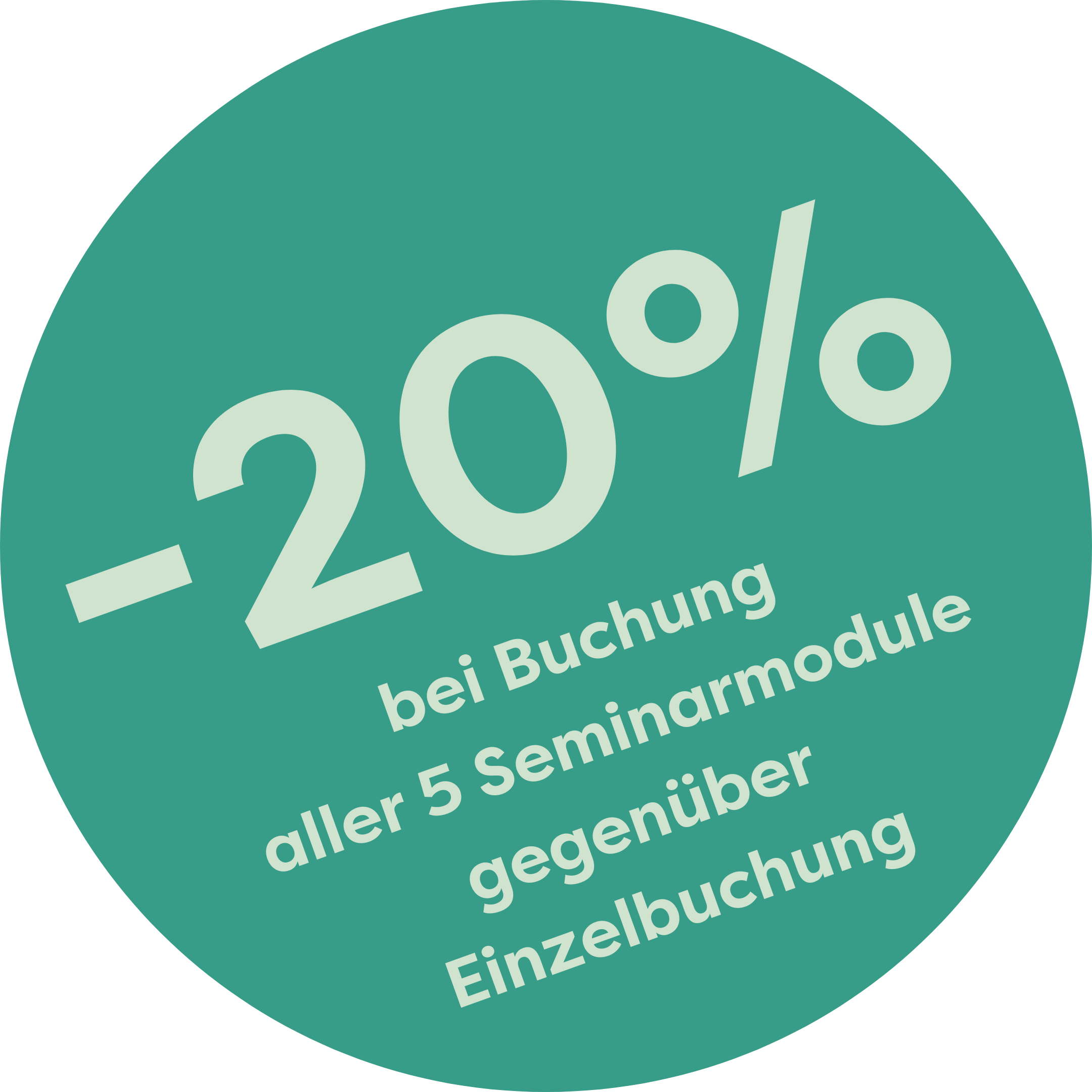 Du kannst mit der Teilnahme an einem Seminar starten - und dich danach für die anderen Module anmelden. Natürlich bekommst du dann auch den Paketpreis (-25% im Vergleich zur Einzelbuchung).